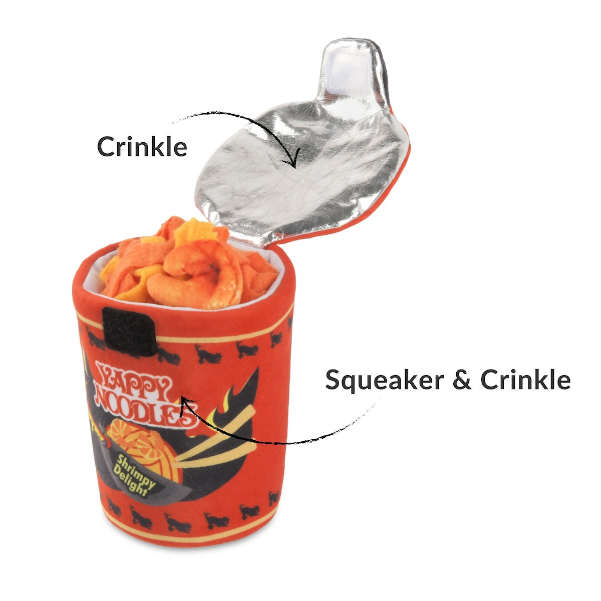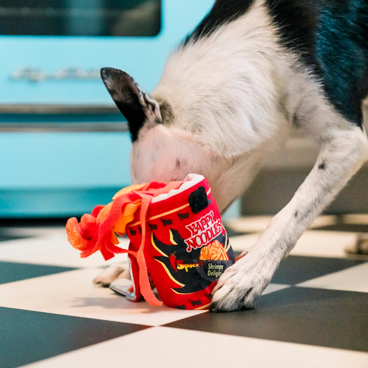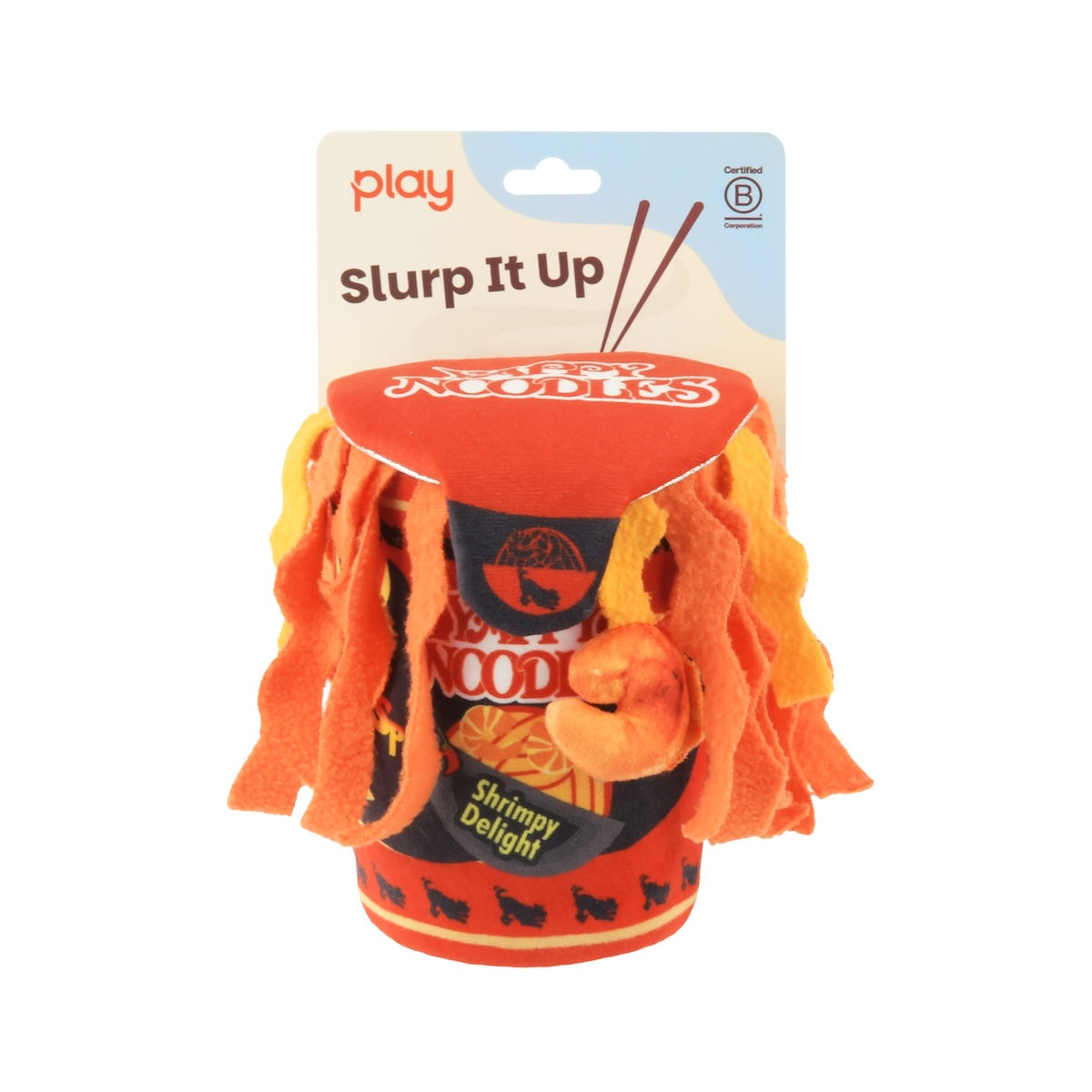 Savor the slurp and serve up some steamy fun with P.L.A.Y.’s International Classic Slurp It Up! This plush noodle toy is too cute to keep on the shelf with its playful features like a hidden squeaker, satisfying crinkles and soft felt noodles perfect for tugging and tossing. Lift the lid to reveal a special surprise! This toy doubles as a treat-hiding spot to keep your pup coming back for seconds.