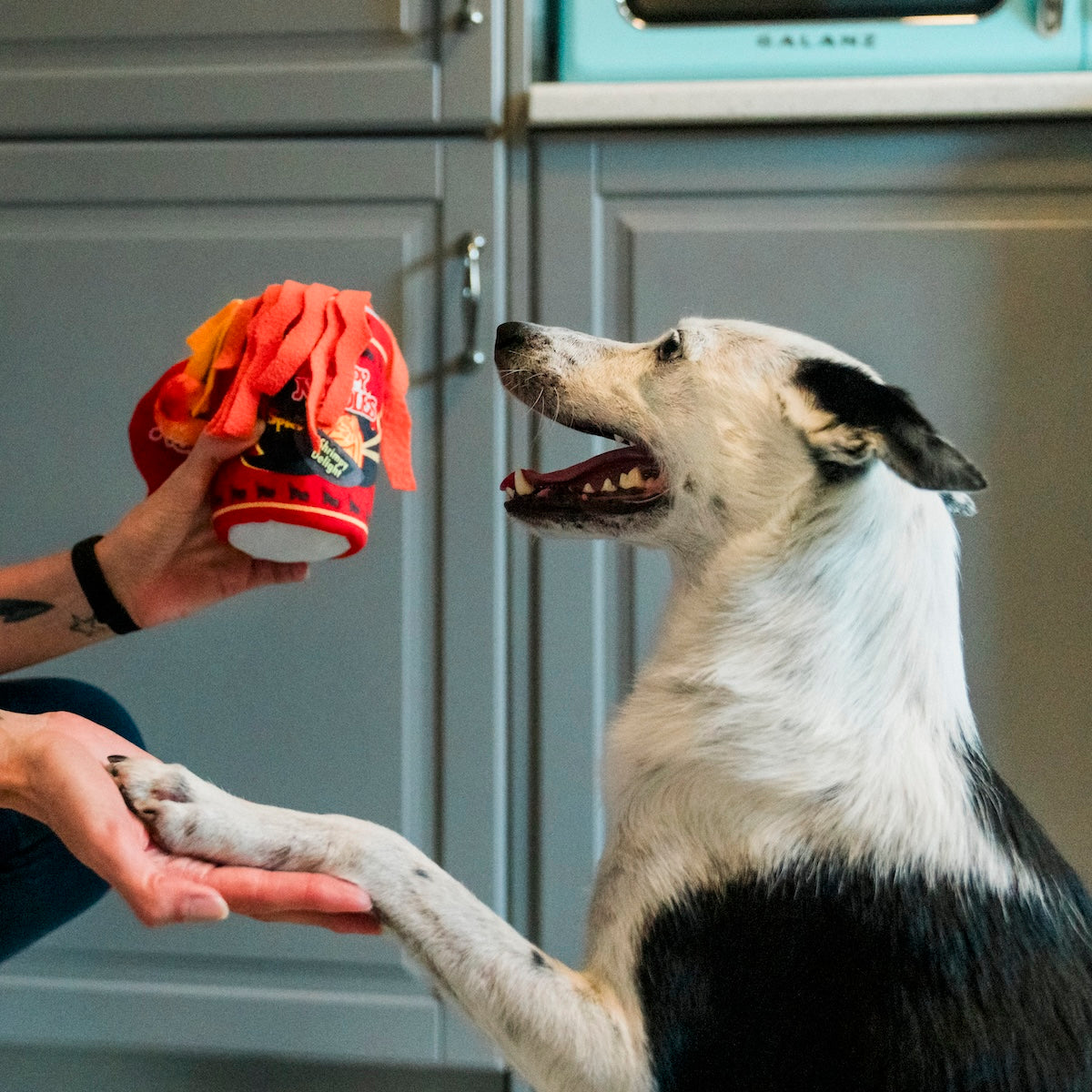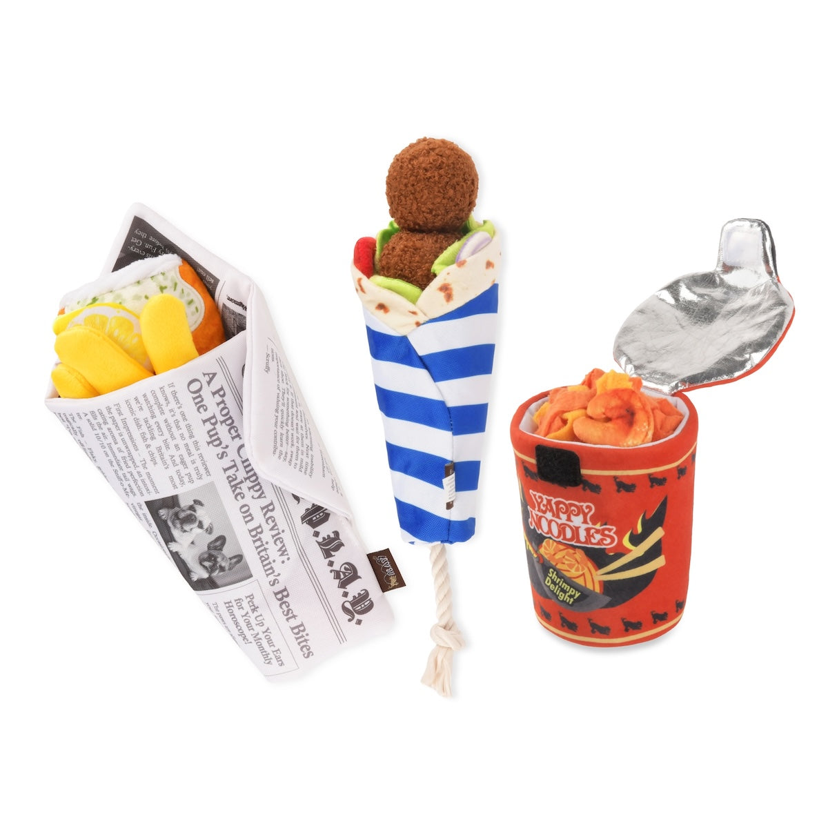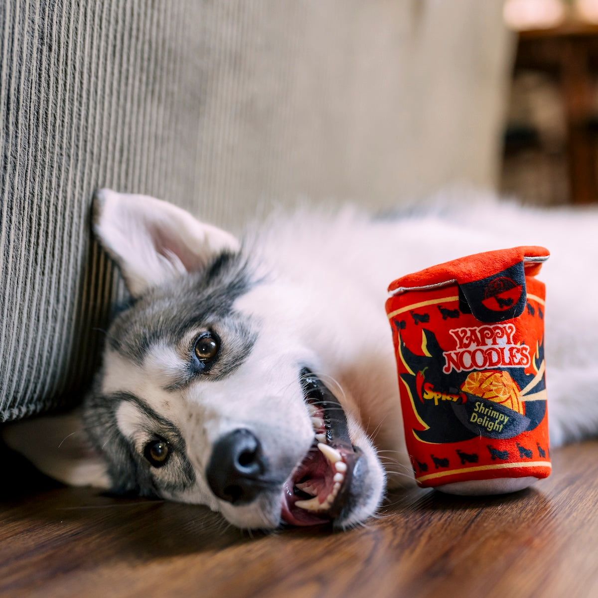 Savor the slurp and serve up some steamy fun with P.L.A.Y.’s International Classic Slurp It Up! This plush noodle toy is too cute to keep on the shelf with its playful features like a hidden squeaker, satisfying crinkles and soft felt noodles perfect for tugging and tossing. Lift the lid to reveal a special surprise! This toy doubles as a treat-hiding spot to keep your pup coming back for seconds.