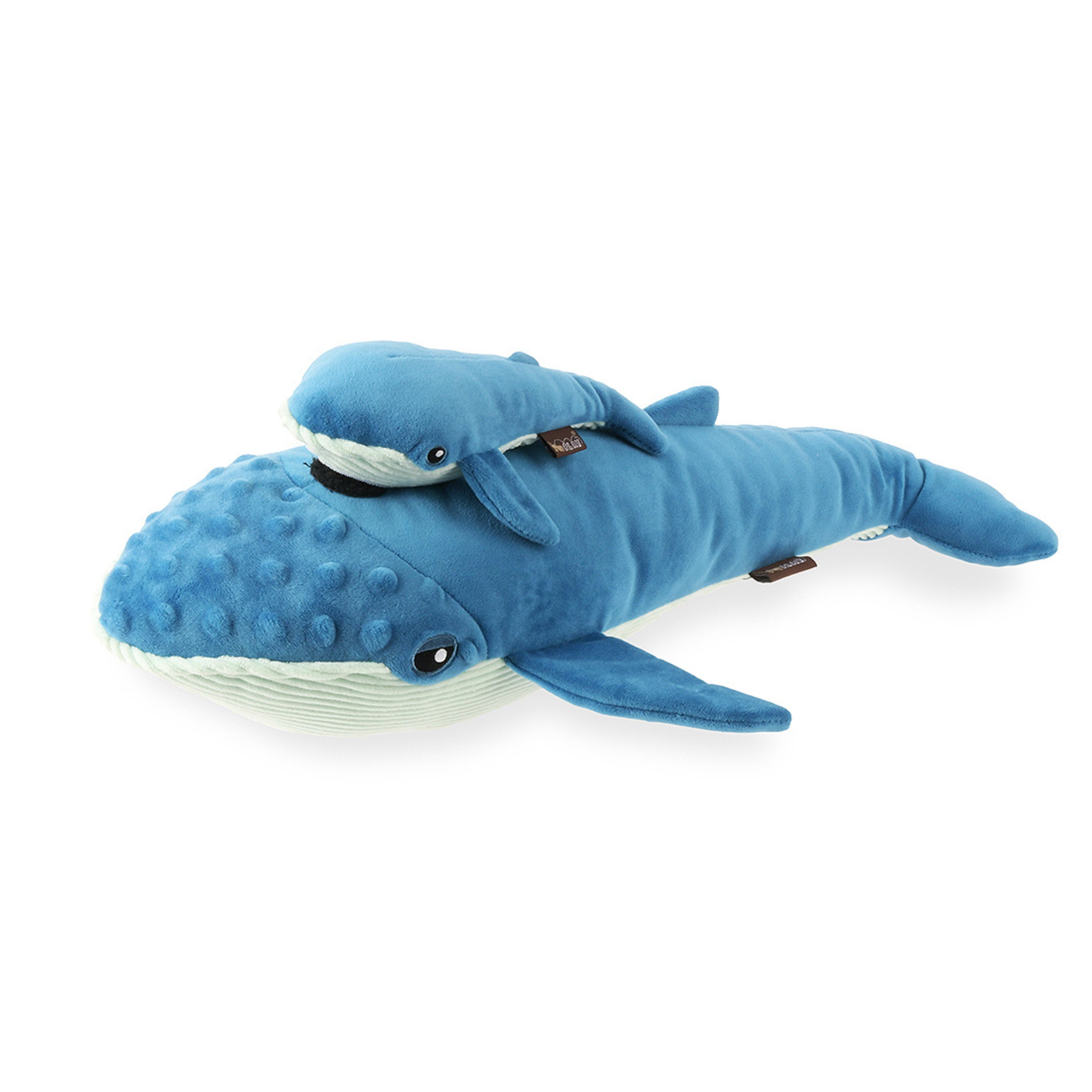PLAY Big Blue & Baby Blue Whale Plush Dog Toy for Large Dogs