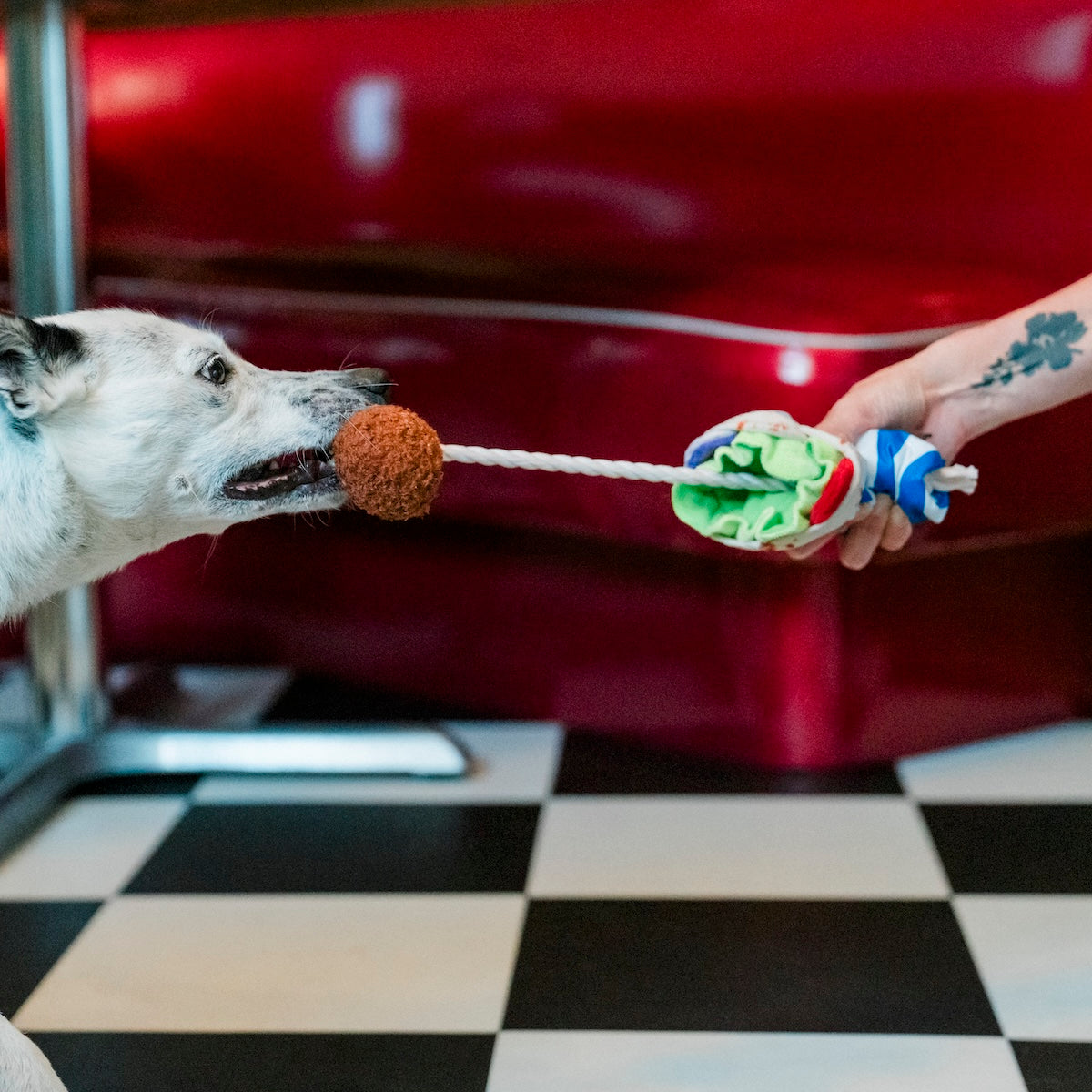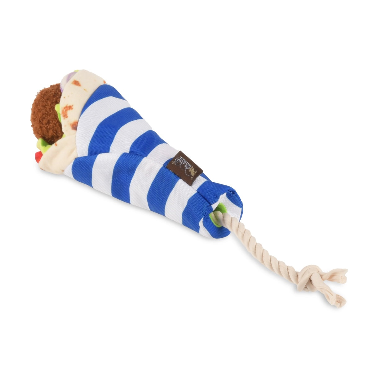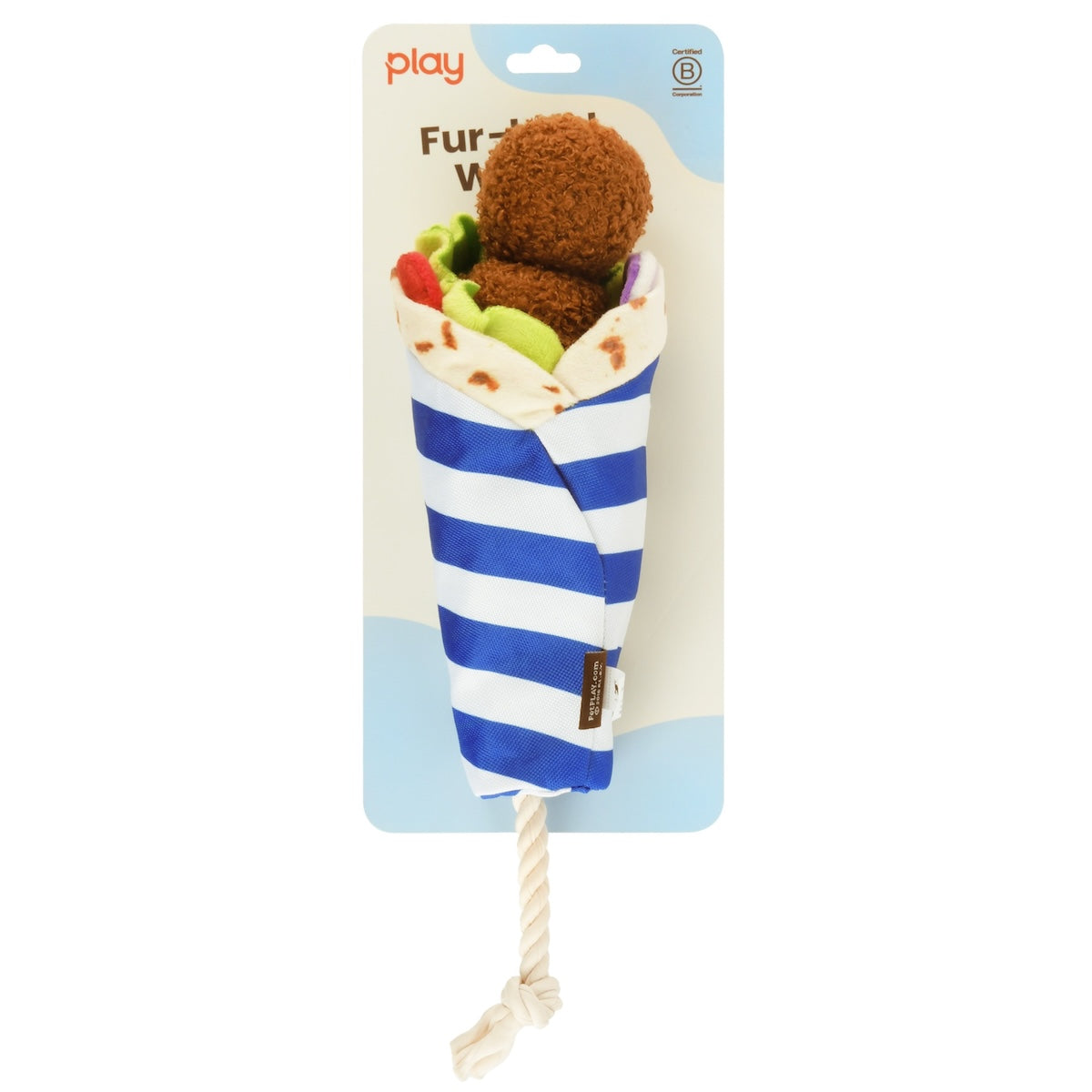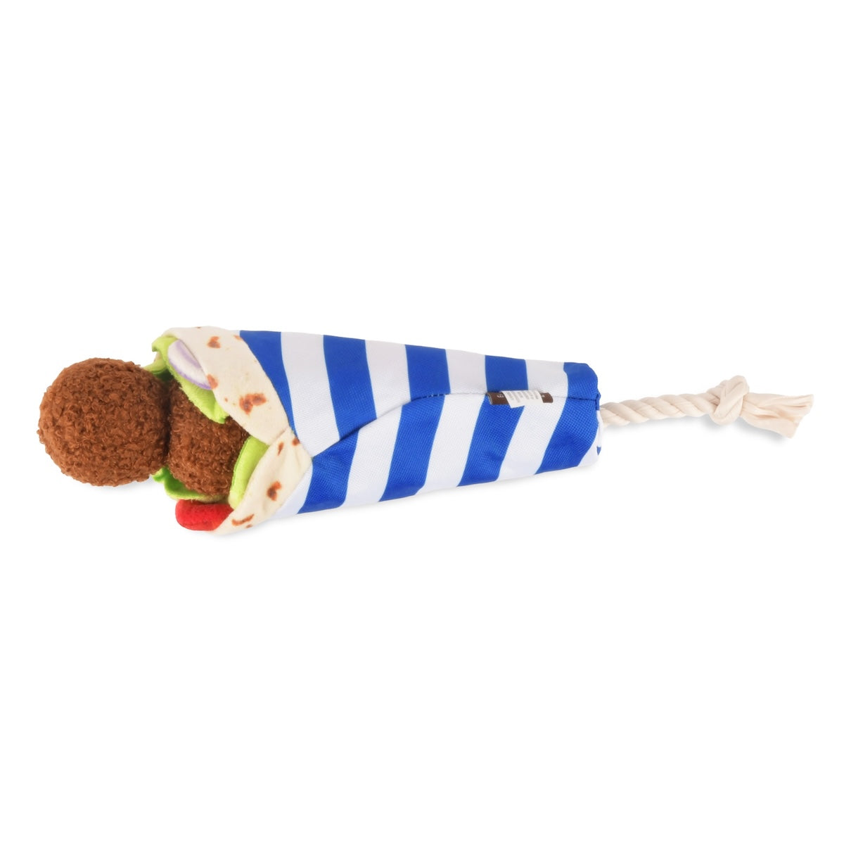 Straight from the food truck to your pup’s toy bin! Inspired by the flavors of the Middle East, P.L.A.Y.’s International Classic Fur-lafel Wrap is stuffed with playtime flavor. With two squeaky meatballs on a sliding rope, crinkly veggie layers and room to stash treats inside, this plush toy delivers endless tugging, twisting and squeaking fun for dogs with a taste for global adventure.