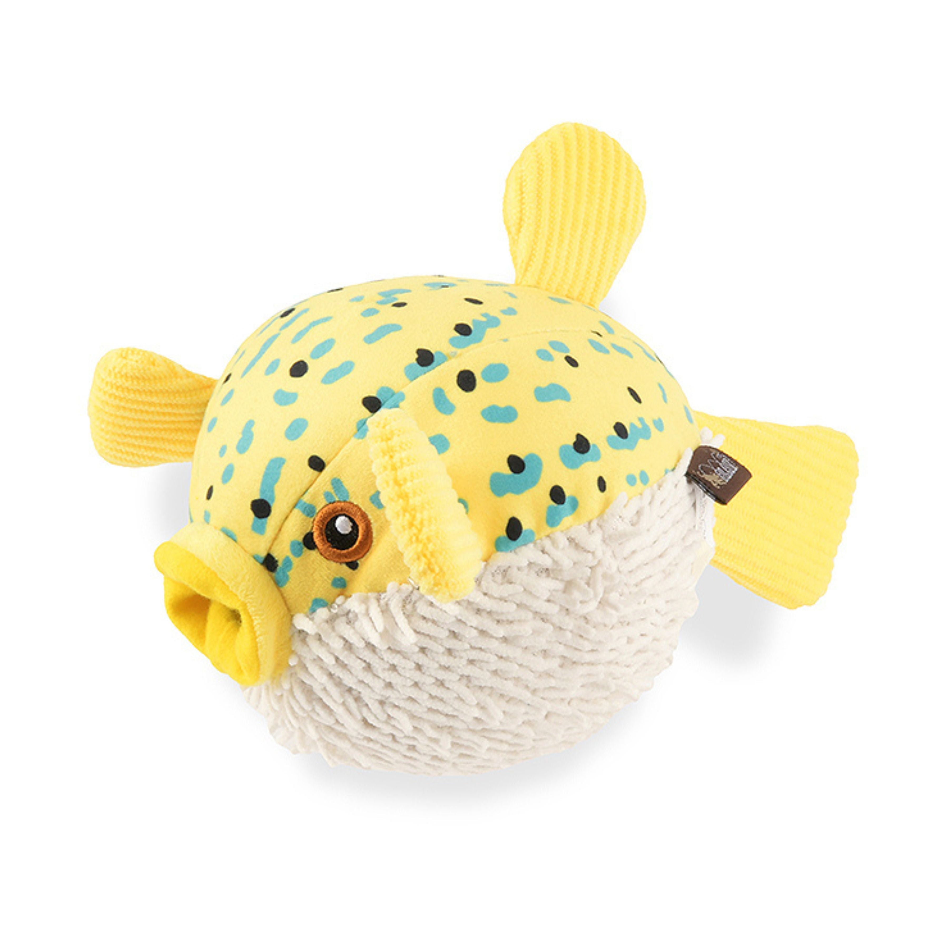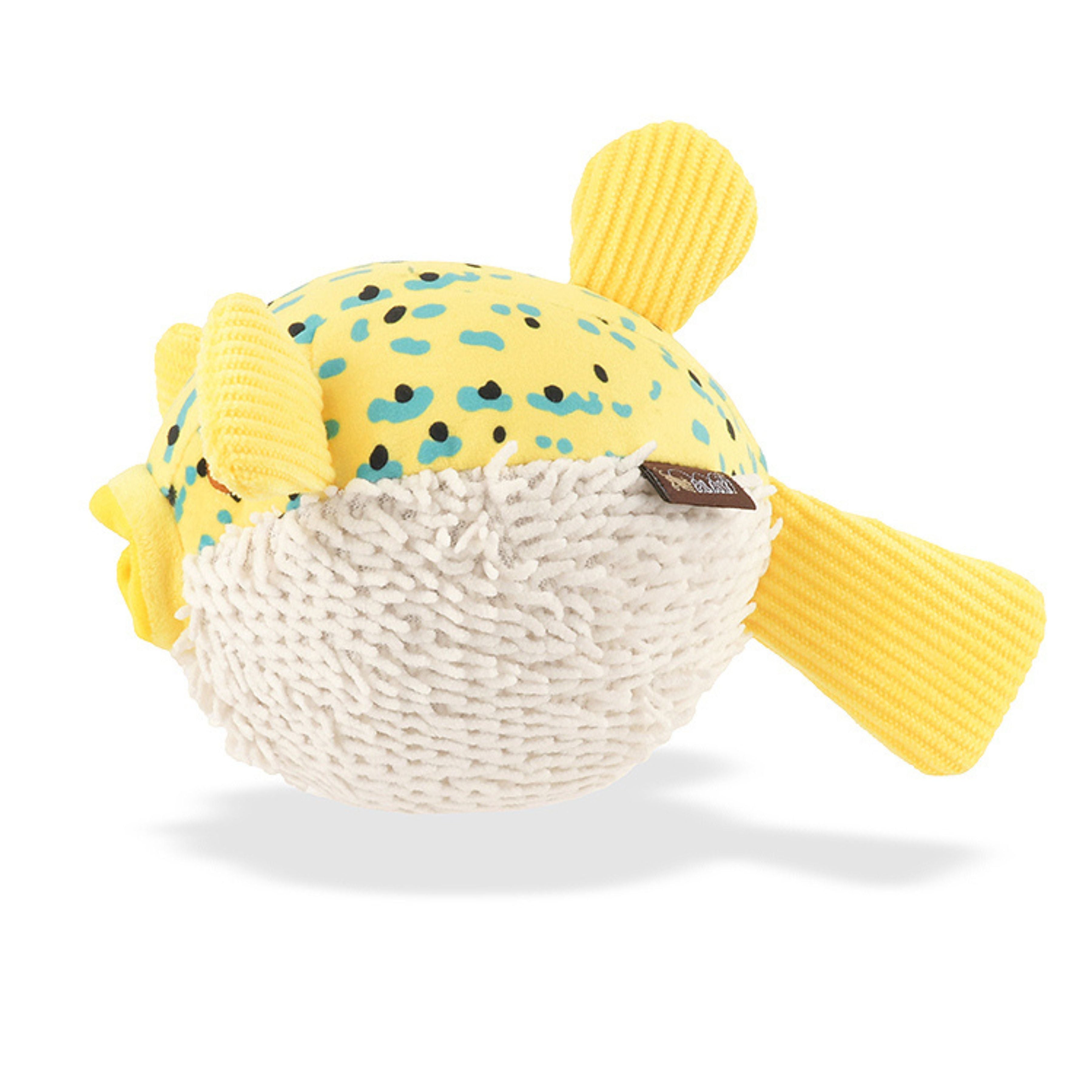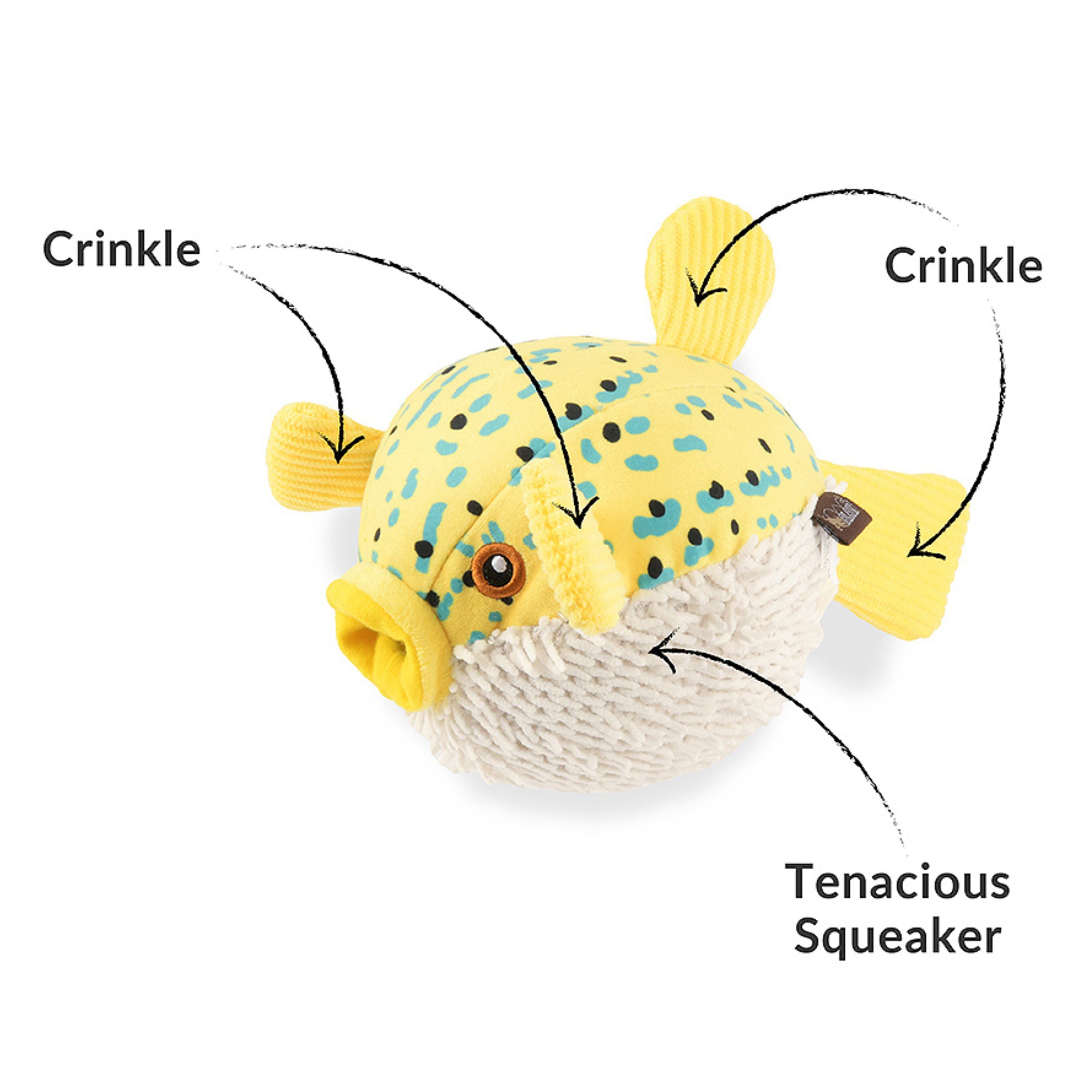 PLAY Puffer Fish Plush Dog Toy Ocean Buddies Collection