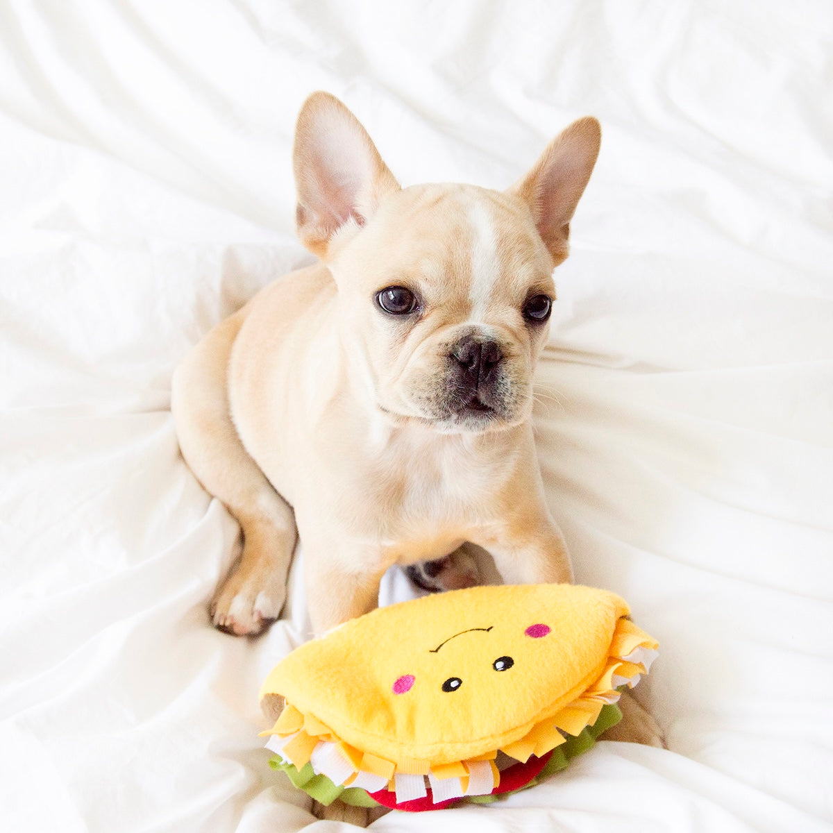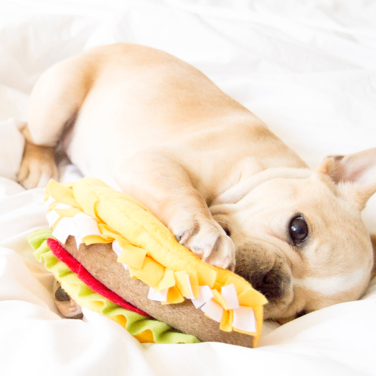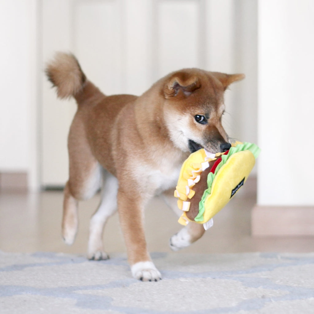 Make every day Taco Day! We’ve taken one of your favorite foods and transformed it into an adorable squeaky NomNomz® Taco plush toy for your dog!